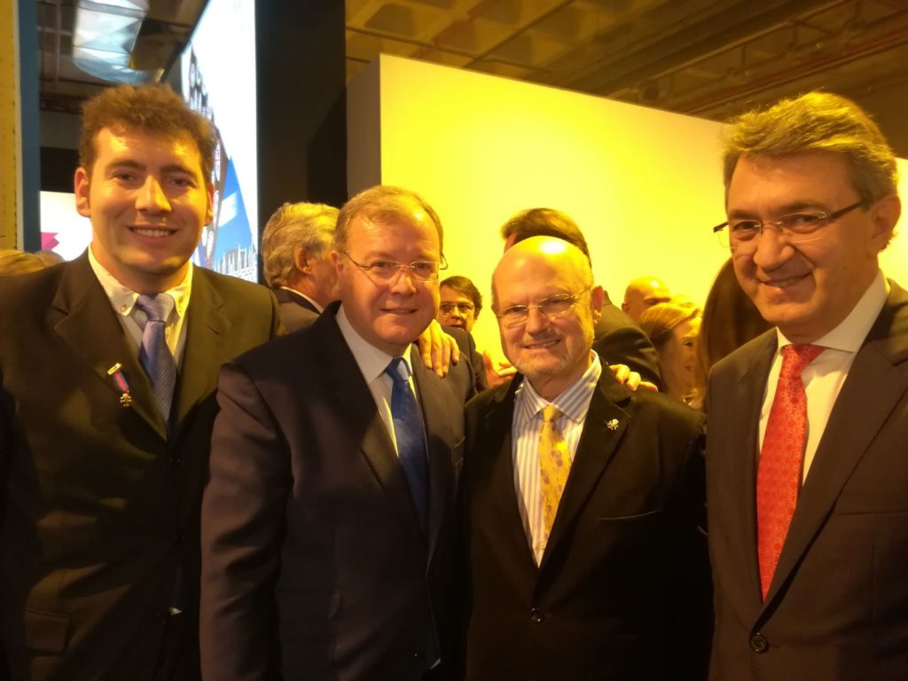 El director comercial de Señorío de Tusinos, Esteban Álvarez Castañón, posa en la foto junto a D. Antonio Silván Rodríguez (alcalde de León), D. Francisco López Becerra y Solé (Marqués de Astorga) y D. Juan Martínez Majo (presidente de la Diputación de León)